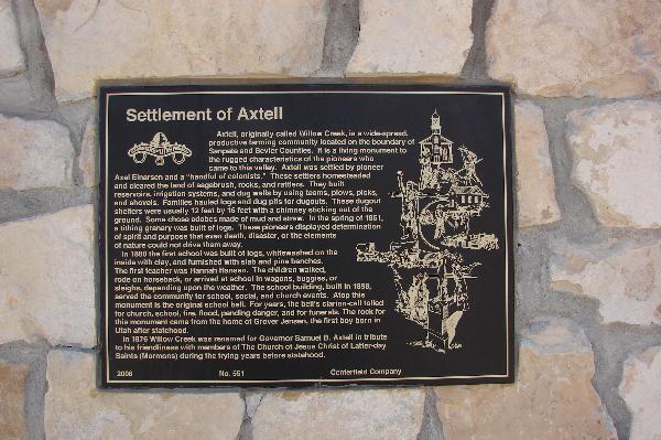| 551 | Settlement of Axtell | Axtell, Sanpete, Utah | Distant Close up | N 39.05486 W 111.82222 | ||