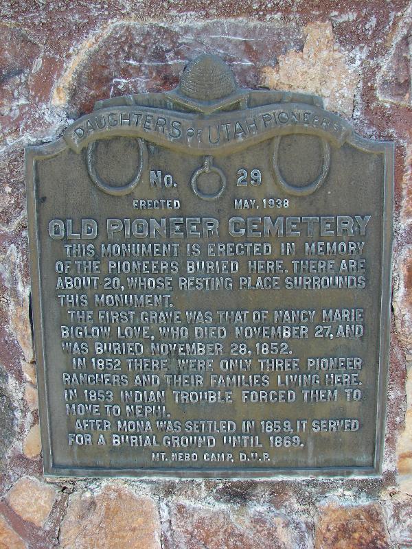 | 29 | Old Pioneer Cemetery | 350 N Main St | Mona | Juab, Utah | Distant Close up | N 39.82153 W 111.85488 |