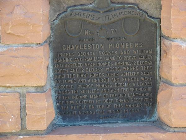 | 71 | Charleston Pioneers | 3590 South 3600 West | Charleston | Wasatch, Utah | Distant Close up | N 40.46356 W 111.47155 |