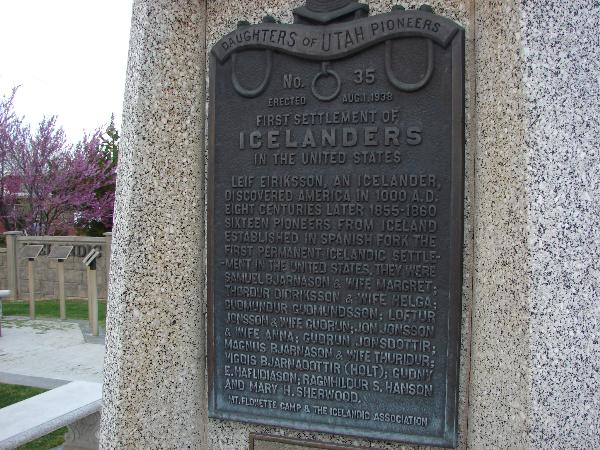 | 35 | First Icelandic Settlement in USA | 400 S 800 E | Spanish Fork | Utah, Utah | Distant Close up | N 40.104680 W 111.640965 |