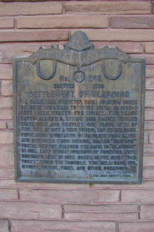 | 584 | The Old Settlers "Swallow's Nest" | 12 N Grayson Pkwy | Blanding | San Juan, Utah | N 37.62565 W 109.47334 | |