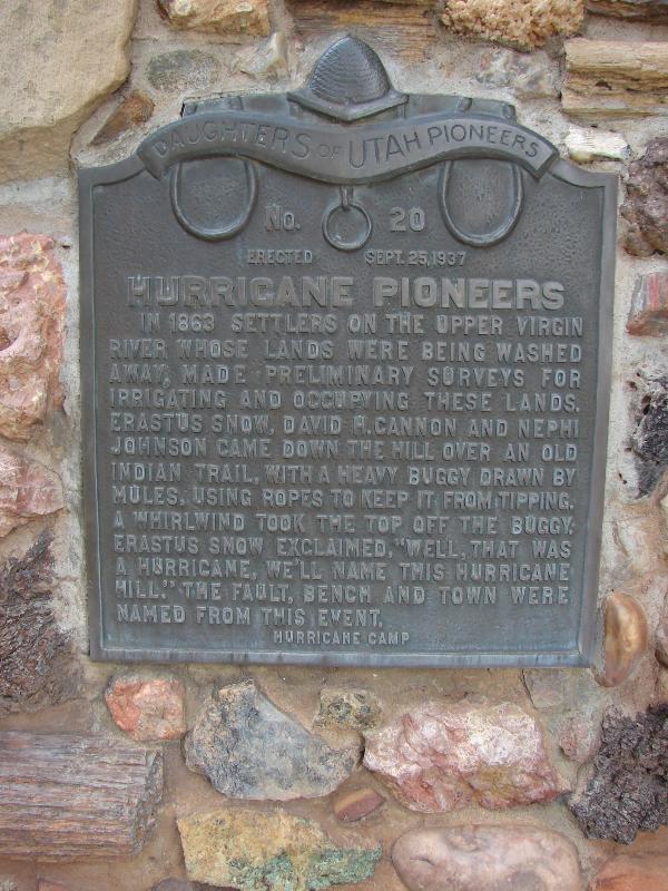 | 20 | Hurricane Pioneers | 35 W State St | Hurricane | Washington, Utah | Distant Close up | N 37.17608 W 113.28869 |