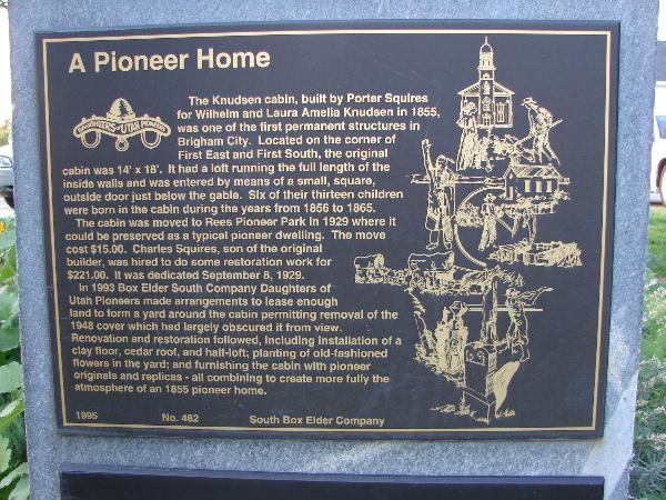 | 89 | Pioneer Cabin | 2335 N 4350 W | Plain City | Weber, Utah | Distant Close up | N 41.30001 W 112.08541 |