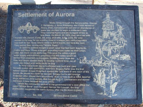 | 536 | Settlement of Aurora | Aurora, Sanpete, Utah | Distant Close up | N 38.91946 W 111.93384 | ||