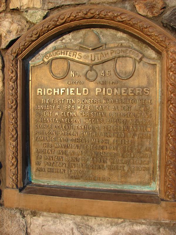 | 45 | Richfield Pioneers | Richfield, Sevier, Utah | Distant Close up | N 38.77245 W 112.08379 | ||