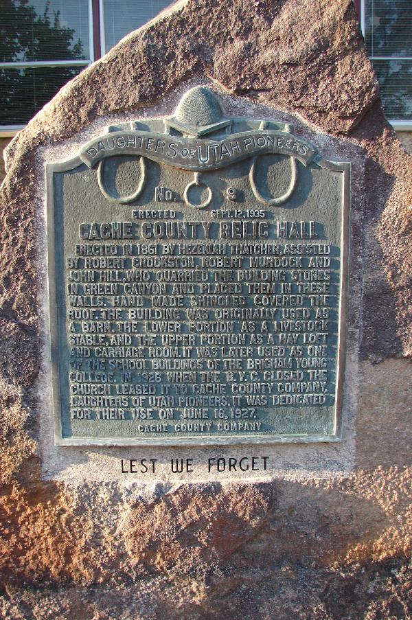| 9 | Cache County Relic Hall | 110 West 100 South | Logan | Cache, Utah | Distant Close Up | N 41.72905 W 111.83824 |