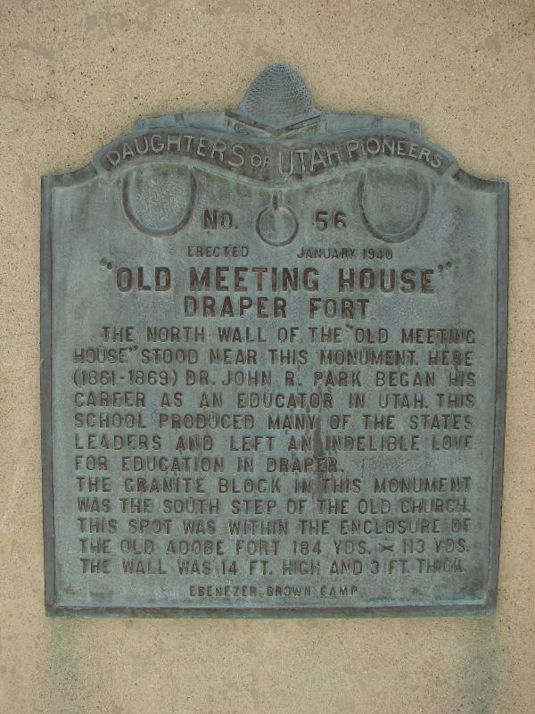 | 56 | Old Meeting House - Draper Fort | Draper, Salt Lake, Utah | Distant Close up | N 40.52266 W 111.86550 | ||