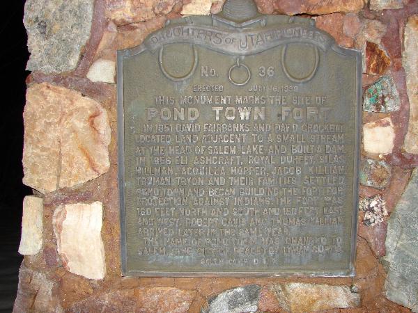 | 36 | Pond Town Fort | 103 S 300 W | Salem | Utah, Utah | Distant Close up | N 40.05315 W 111.67918 |