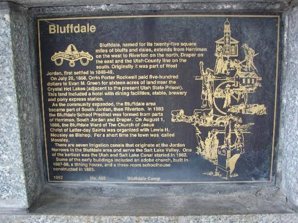 | 546 | Early Settlers of Bluffdale | Bluffdale, Salt Lake, Utah | Distant Close up | N 40.48981 W 111.95185 | ||