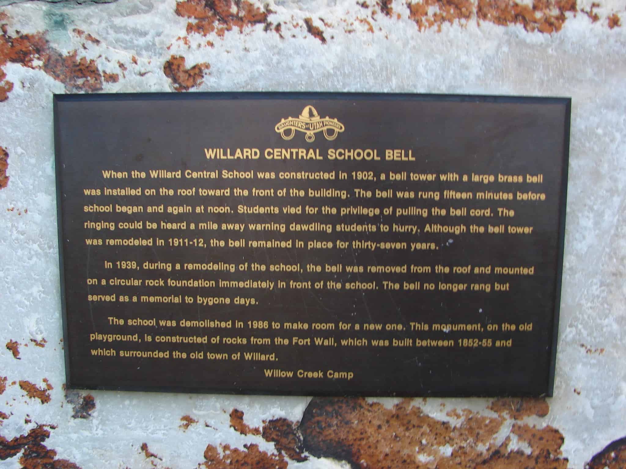 | Willard Central School Bell | 80 West 50 South | Willard | Box Elder, Utah | Distant Close up | N 41.40839 W 112.03854 | |