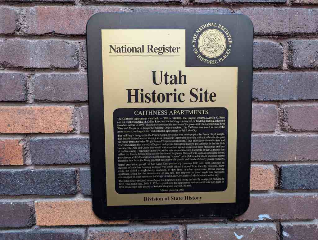 The Caithness (Riter) Apartments (now the Caithness Condominiums) were built in 1908 and are some of the many interesting apartments in Salt Lake City from that time frame.