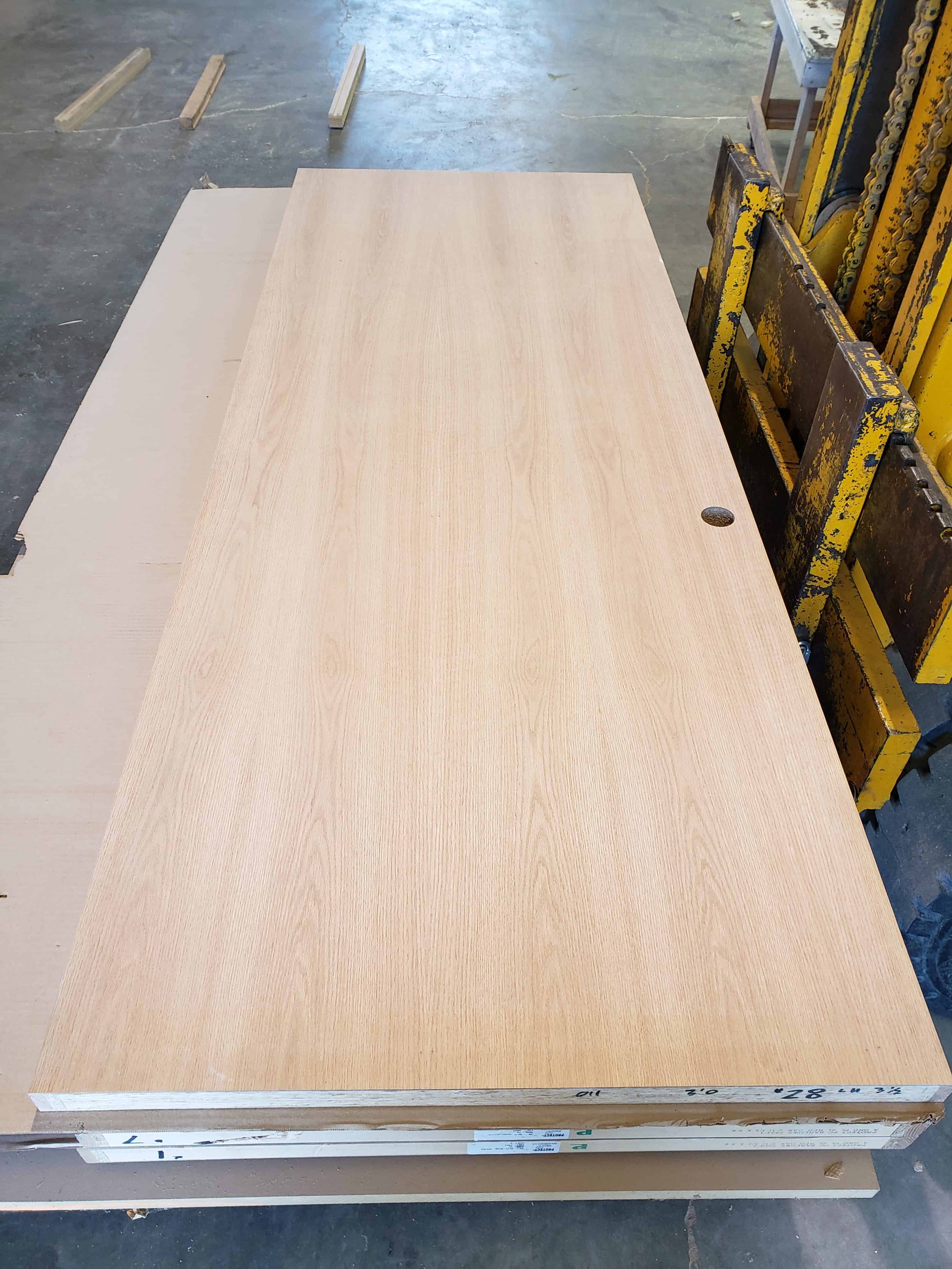 #31 – Oak Flush Veneer, hinges for left hand swing, bored for lock prep.